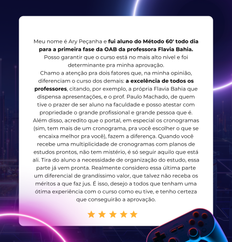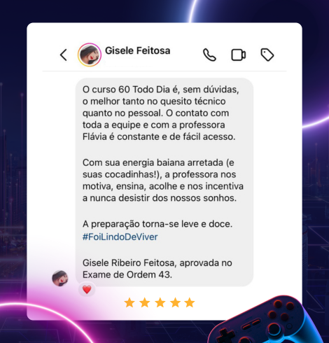 Ao garantir sua vaga na OAB 4.6 – A REVOLUÇÃO, você transforma o estudo para OAB em uma experiência única, ativa e inovadora, ficando no controle e dando Game Over na banca.