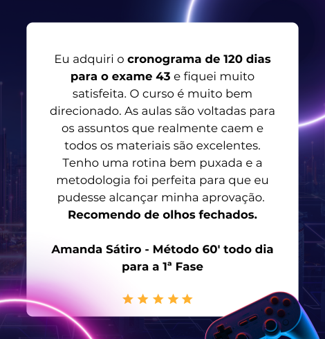 O Curso de 1ª fase – 45° Exame, conta com uma garantia 100% de satisfação. Ou seja, você tem 7 dias para acessar o conteúdo do curso, e se ainda achar que o treinamento não é para você, basta pedir reembolso e devolveremos integralmente seu dinheiro. Sem perguntas e questionamentos.